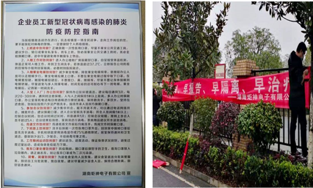 為應(yīng)對(duì)新型冠狀病毒感染的肺炎疫情,落實(shí)以企業(yè)防控為主的綜合防控措施,湖南炬神電子有限公司提前謀劃、周密部署,積極做好復(fù)工復(fù)產(chǎn)前各項(xiàng)準(zhǔn)備措施,為早日恢復(fù)生產(chǎn),保障社會(huì)經(jīng)濟(jì)正常穩(wěn)定運(yùn)行打響了一場全員戰(zhàn)“疫”。
