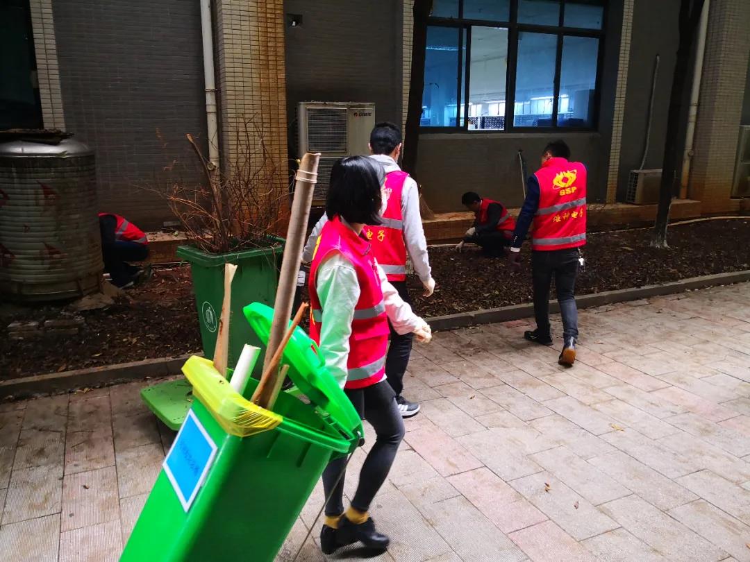 活動得到了郴州高新區(qū)機關第三黨支部的大力指導。炬神電子黨支部書記郭小雷身先士卒,帶領大家清掃道路垃圾、花壇枯枝敗葉,一派熱火朝天。